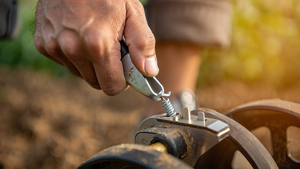 Глубина обработки зависит сразу от нескольких параметров. В первую очередь влияет вес устройства - чем тяжелее культиватор, тем глубже фрезы входят в почву. Дополнительную регулировку обеспечивает специальный ограничитель, который называется сошник. С его помощью можно задать нужную глубину обработки почвы.