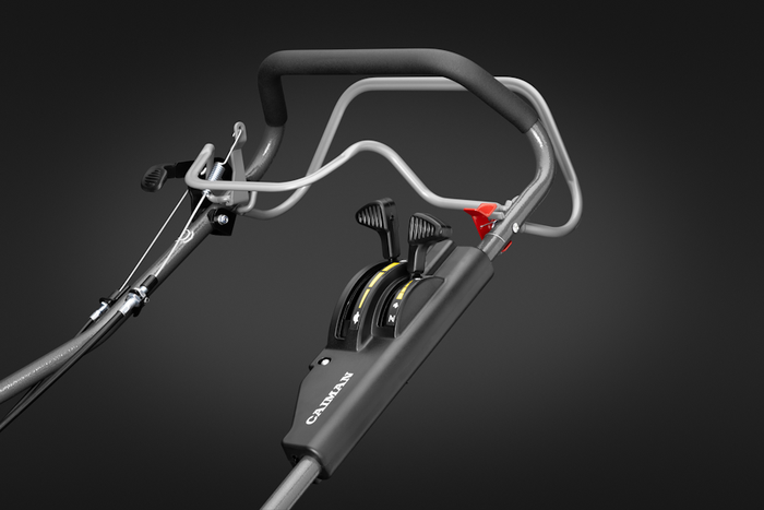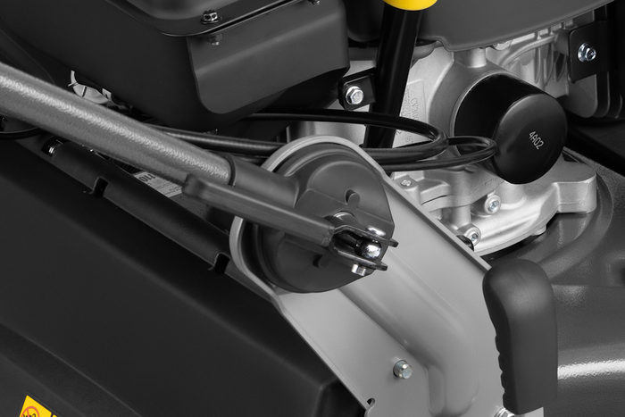 Газонокосилка оснащается стояночным тормозом для безопасности при транспортировке в автомобиле или прицепе, а также во время перерывов в работе. Рычаг тормоза удобно расположен на рукоятке вместе с остальными элементами управления (скоростью и приводом хода, оборотами двигателя). Привод ножа включается отдельно, поэтому машину можно безопасно перемещать самоходом в рабочую зону или из нее с выключенным ножом. Рукоятка имеет мягкое покрытие для комфортного и надежного захвата. Складная конструкция уменьшает габариты газонокосилки при межсезонном хранении.