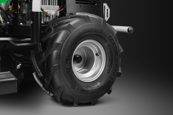 Машины выпускаются в двух модификациях: заднеприводная и полноприводная версия. Японская усиленная профессиональная гидростатическая трансмиссия с механической блокировкой дифференциала выдерживает повышенные нагрузки за счет увеличенной площади сечения приводного вала D25.4 мм. Специальная конструкция с низким центром тяжести позволяет машине работать на крутых склонах, обочинах дорог, откосах железнодорожных путей без риска опрокидывания.