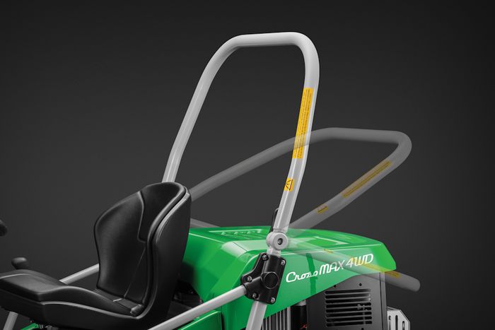Стальная защитная рама снижает риск получения травм оператором в случае опрокидывания машины. Раму можно сложить для удобства хранения и транспортировки.