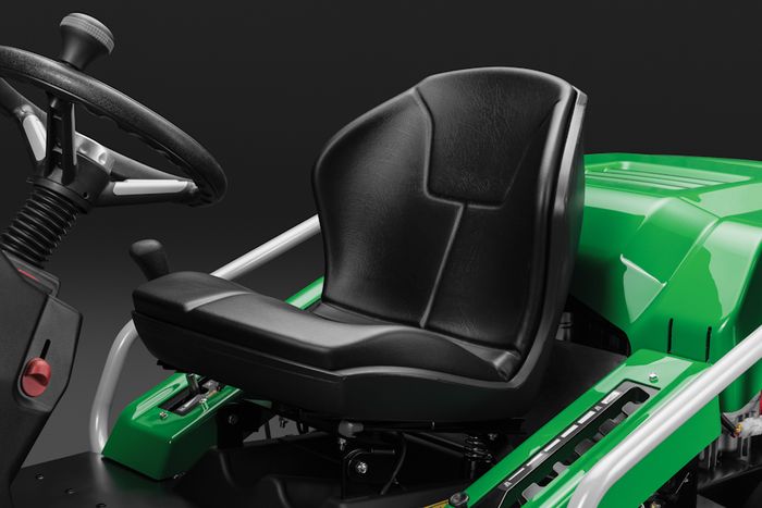 Удобное сиденье оператора установлено на амортизаторах. Кресло регулируется в положении вперед/назад и позволяет работать длительное время без ощущения усталости.