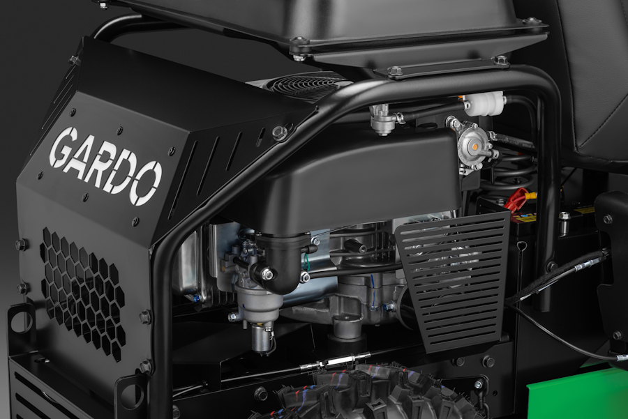 Одноцилиндровый двигатель коммерческого класса мощностью 14 л.с. с технологией OHV (верхнее расположение клапанов), чугунной гильзой цилиндра и системой двойной фильтрации воздуха способен надежно работать в условиях длительных и интенсивных нагрузок. Топливный бак емкостью 15,5 л. позволяет работать длительное время между заправками.
