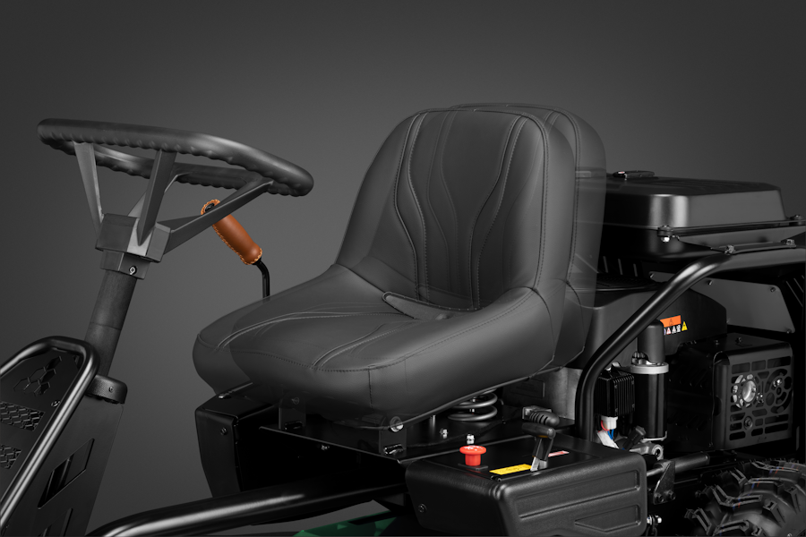 Рама райдера имеет сочлененную конструкцию, позволяющую передней и задней осям отклоняться относительно друг друга на 5° по вертикали. Это обеспечивает максимальный контакт с поверхностью газона, повышает проходимость на неровных участках, и точность управления.