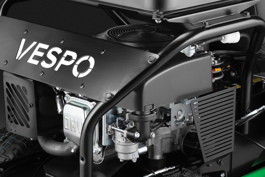 Одноцилиндровый двигатель коммерческого класса мощностью 14 л.с. с технологией OHV (верхнее расположение клапанов), чугунной гильзой цилиндра и системой двойной фильтрации воздуха способен надежно работать в условиях длительных и интенсивных нагрузок. Топливный бак емкостью 15,5 л позволяет работать длительное время между заправками.