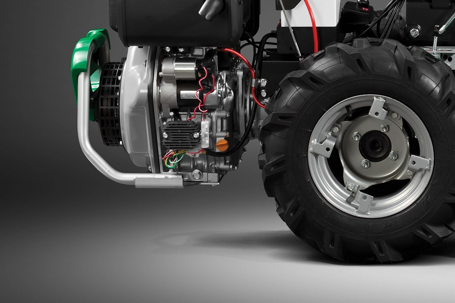Все двухколесные тракторы CAIMAN Atletico с валом отбора мощности имеют низкий центр тяжести, что снижает усилия на рукоятках управления и позволяет производить эффективную работу на склонах.